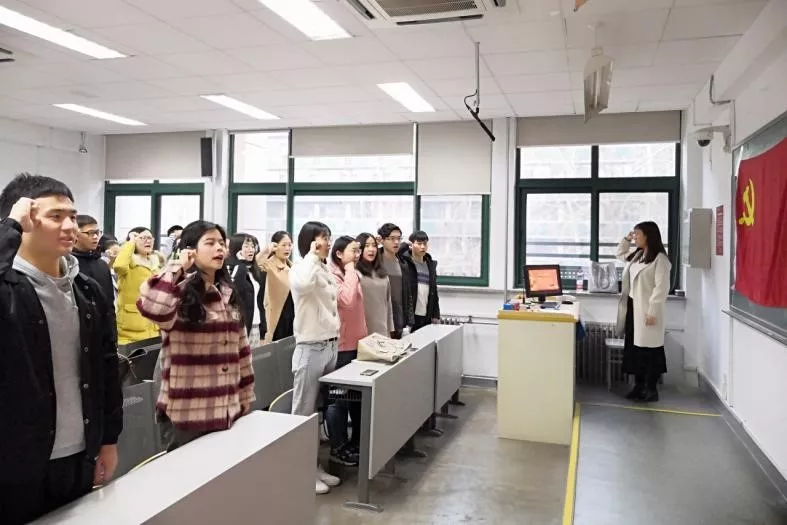 上午八点,全体预备党员在公教三楼3301室开展宣誓活动,歌唱国际歌,并在员工党建工作部组织部部长曹佳星的带领下进行了庄严的入党宣誓。