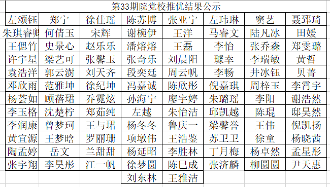 关于304永利集团公司党校确定第33期积极分子培训班名单的公示