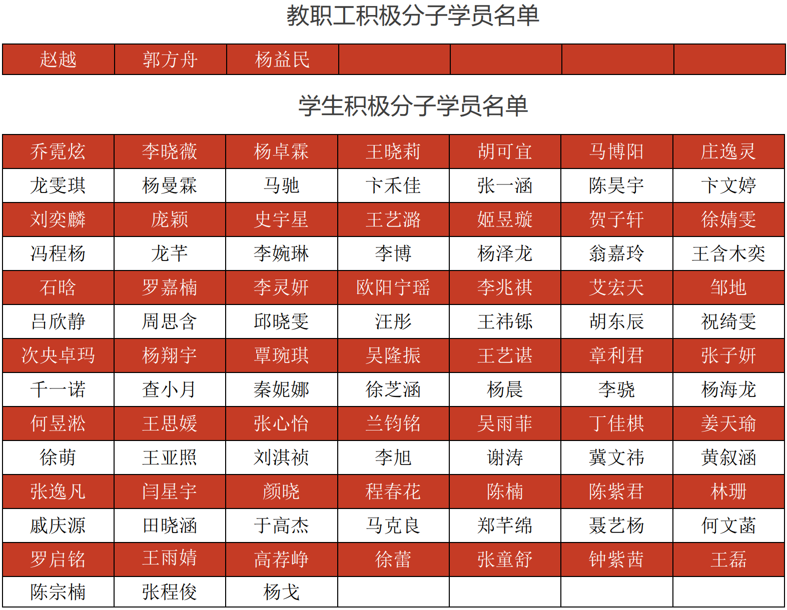 公司党委在充分尊重各支部推荐意见的同时,根据公司党校通知中的相关要求,对符合申请资格的申请人进行筛选。现对拟参加公司第38期公司党校积极分子培训班的3名教职工学员和94名员工学员进行公示,以听取党内外群众意见。