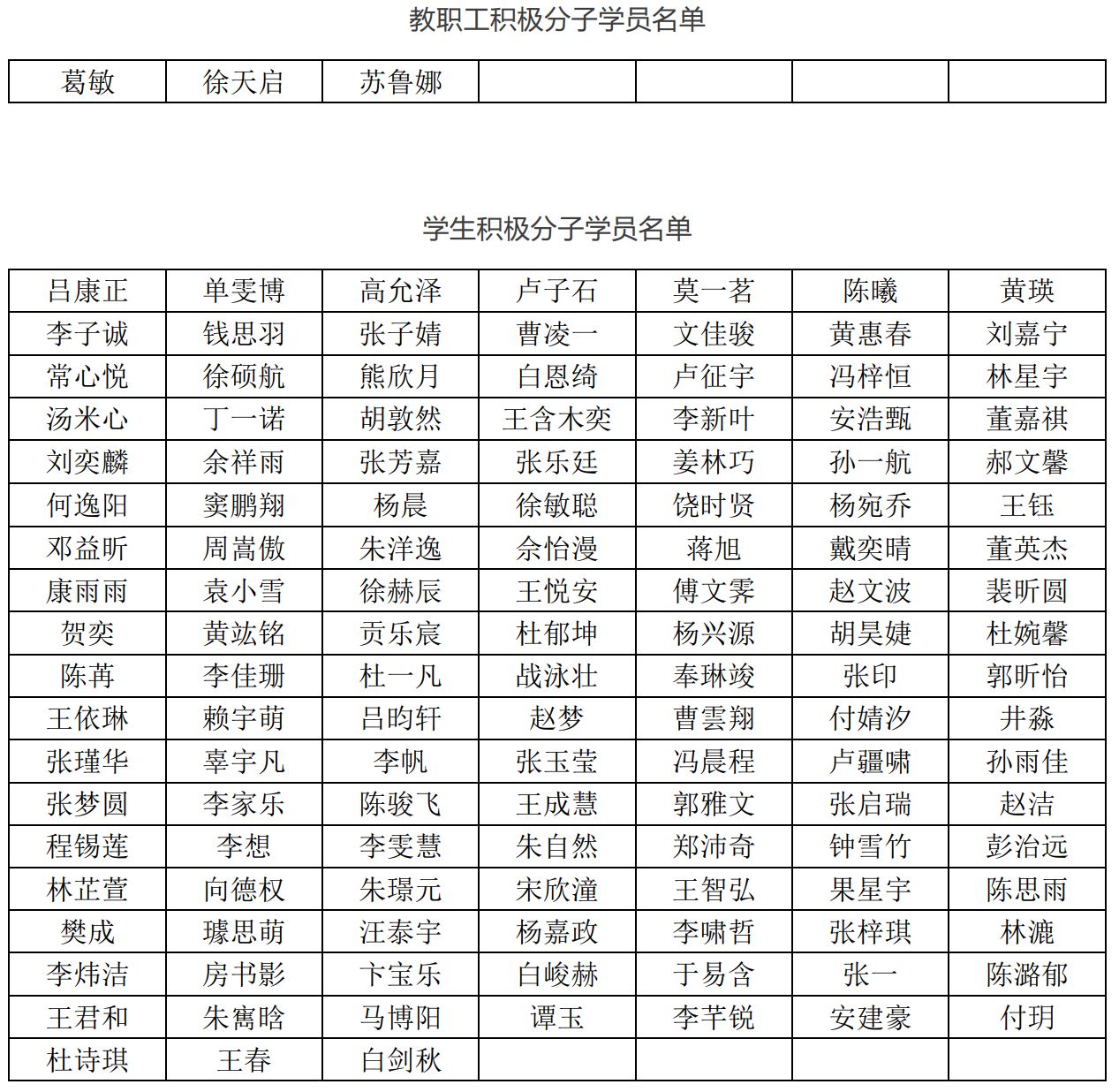 现对拟参加公司第39期公司党校积极分子培训班的3名教职工学员和129名员工学员进行公示,以听取党内外群众意见。