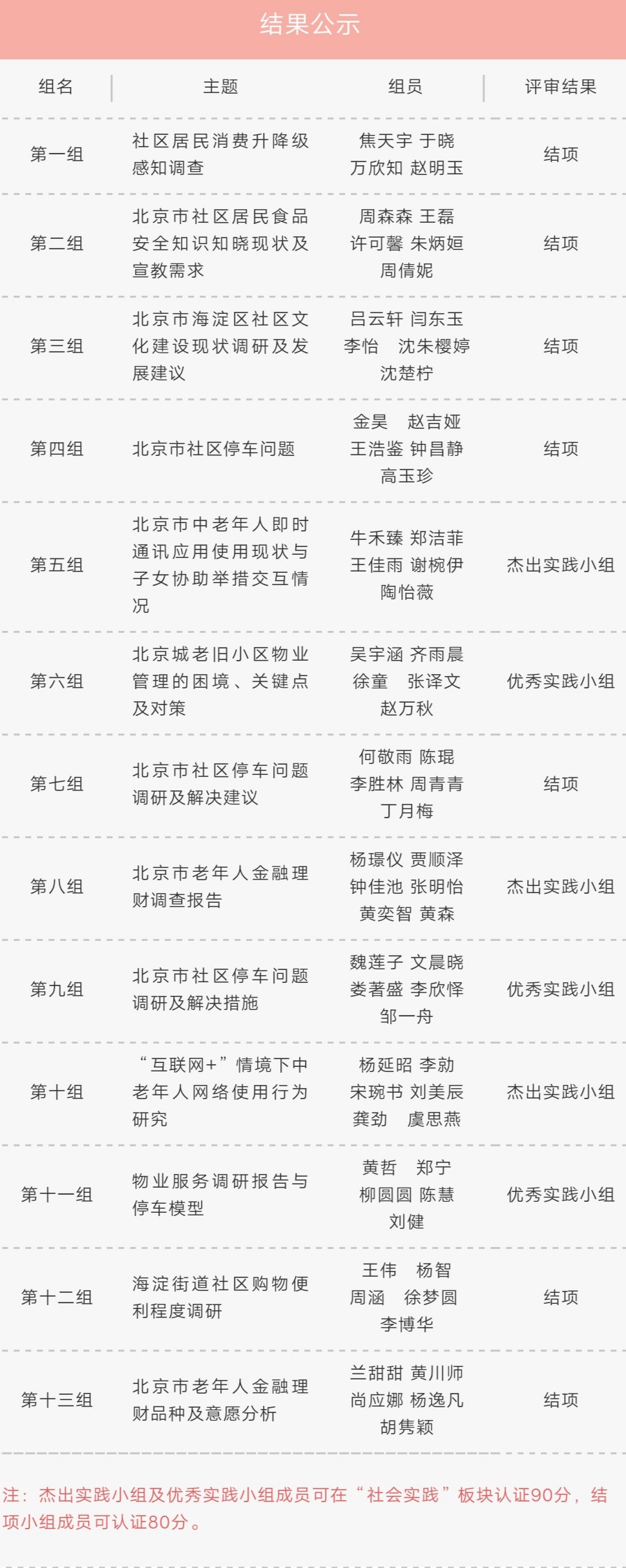304永利集团2018年秋季学期 “民声北京”社区调研社会实践项目结项评优结果公示