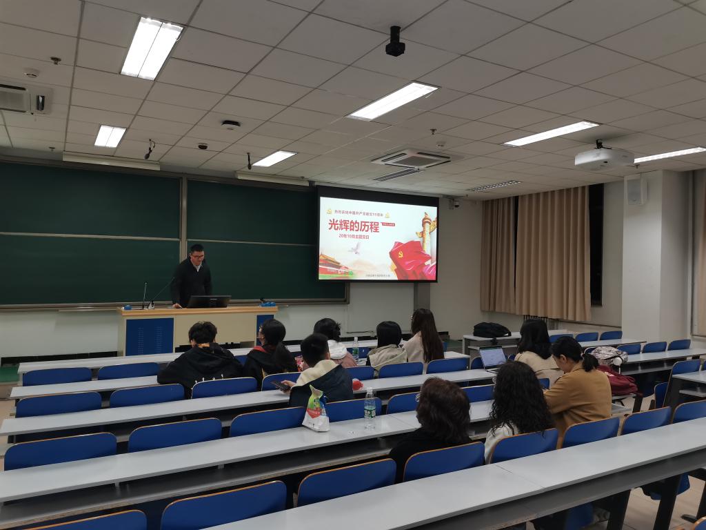 2020年10月14日晚,2020级金融专硕四班党支部在教一1405教室开展了“光辉的历程——热烈庆祝建党99周年,喜迎建党100周年”主题党日活动。本次活动由支部书记卫京伟主持。