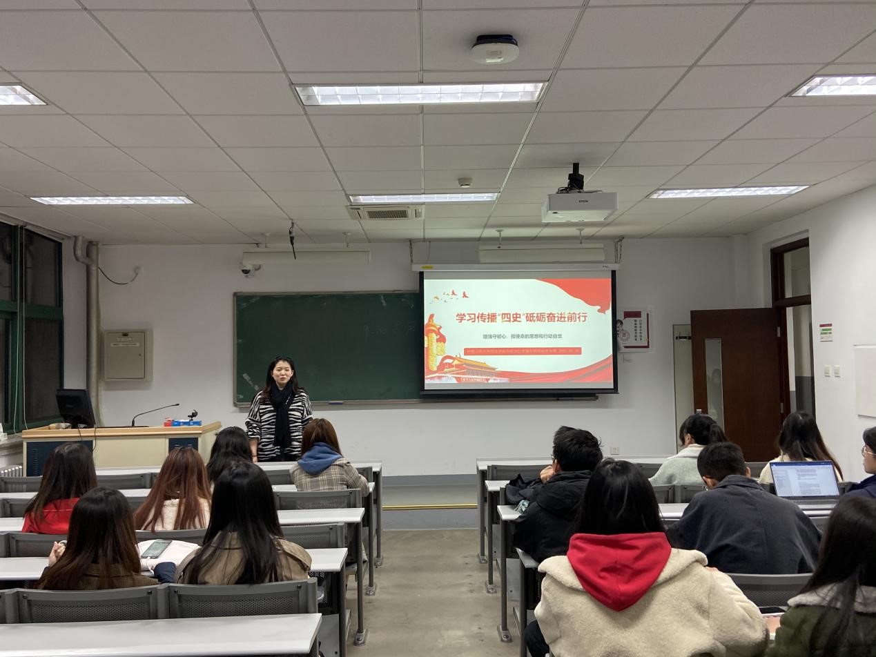 2021年10月20日晚,2021级金融专硕四班党支部于公共教学三楼3507教室开展“学‘四史’守初心”主题党日活动。支部成员共19人参与此次活动,活动由党支部书记王璐主持。