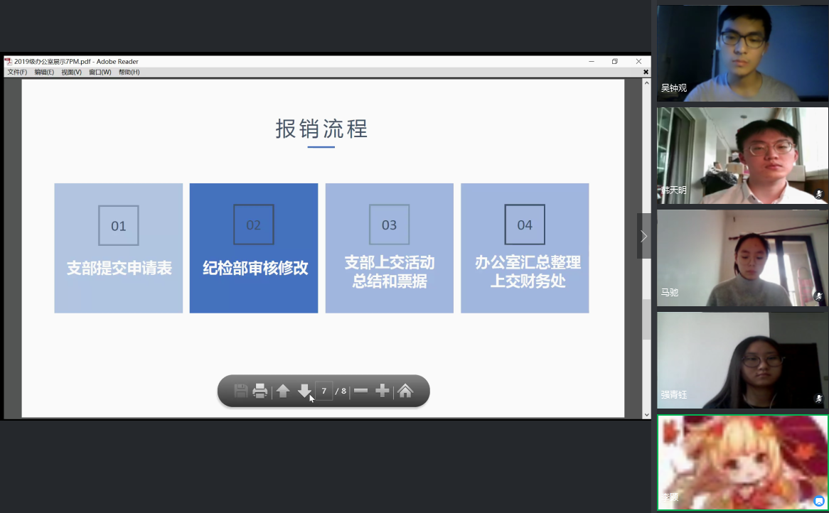 宣传部的干事们围绕日常通讯、公文撰写、支部稿件、活动拍照四个部分详细介绍了部门工作,显示出宣传部在联系党委与支部党员、协助贯彻党委政策方针、扩大党建工作影响力方面发挥的重要作用。