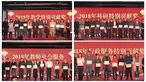 联欢会上颁发304永利集团2018年度特别贡献奖,吴晓球副董事长、庄毓敏经理、孙华玲书记分别为在公司产品、学术科研、社会服务、行政管理等方面做出贡献的教工进行了表扬和颁奖。