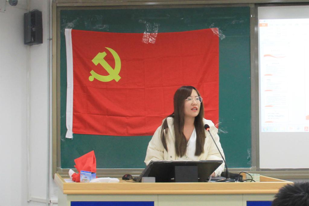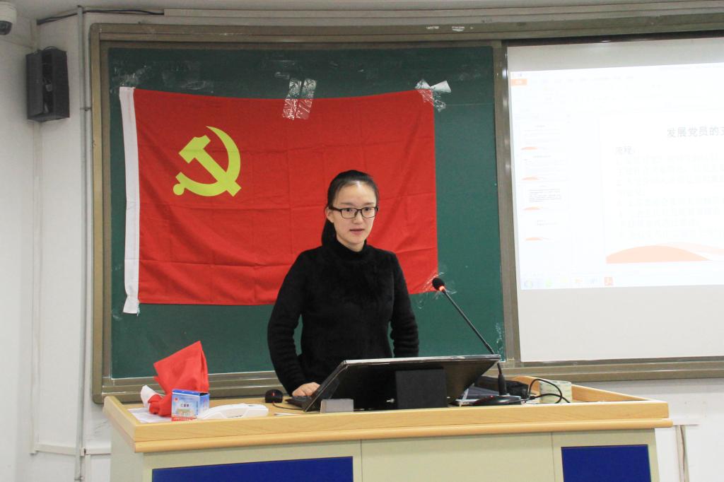 组织部部长符新悦首先向全体发展对象介绍了党员发展的后续流程,并对入党志愿书、支部综合考察报告等党员发展材料填写规范进行了详细说明。她强调,上级党委将对每名发展对象的材料进行严格审查,每名同学都应重视材料填写的完整性与规范性,确保后续入党流程的顺利开展。针对材料完善问题,她以往期党员发展材料中出现的典型问题以及上级党委的审查意见为例,指出了填写过程中的需重点注意的事项,希望各位学员认真对待,仔细填写。