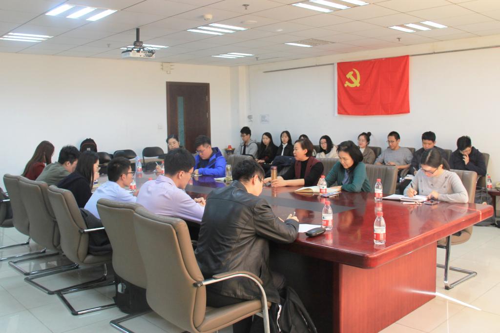 11月8日中午12点半,公司党委“不忘初心、牢记使命”主题教育“加强基层党组织建设”专题研讨会在明德主楼714会议室召开。公司党委书记孙华玲,党委副书记宋科、赵锦兰出席会议。本次活动由公司党务秘书兰青主持。公司本硕博各员工党支部书记、员工党建工作部成员代表参加活动.