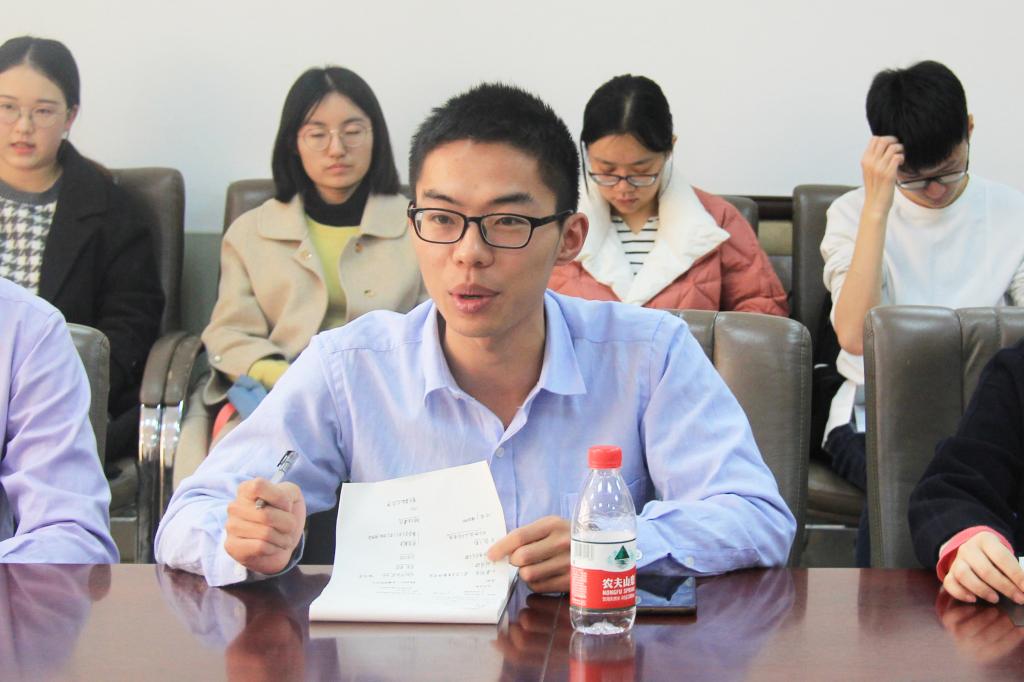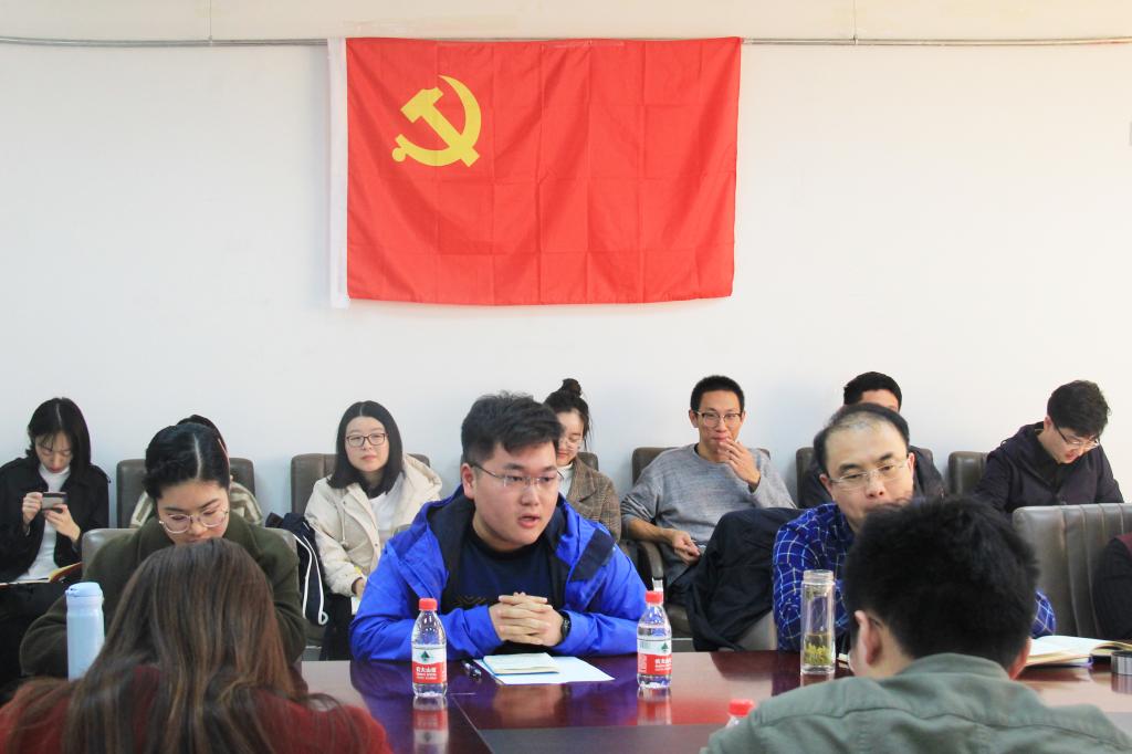 各支部书记报告本支部工作情况,分享了工作经验与方法。2017级金融博士党支部书记贾翔夫介绍了支部成立两年来的工作成果,党支部成员理论学习与社会实践经历丰富,在“一带一路”高峰论坛及亚洲文明对话大会中担任志愿者,充分发扬志愿精神。2017级金融学硕党支部书记刘尔卓表示,自己的支部工作围绕建制度、创活动、抓入党三部分展开,在推进日常工作的规范化制度化的基础上,切实保障党建工作顺利开展,并加强对积极分子的培训。2019级金融博士党支部书记刘家琳分享了支部的特色活动,如通过参观中国美术馆举办的“新中国70年成就展”,赏画会意,潜移默化地增强同学们的爱国情感,培养党性。2016级本科第一党支部书记钱开昊组织四个支部共同举办活动,增强交流;同时建设思想汇报查重制度,保障思想汇报质量。
