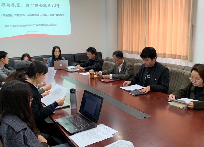 赵锡军教授的发言语重心长、发人深省,党课最终在热烈的掌声中圆满结束。本次党课是支部开展“不忘初心、牢记使命”主题教育的重要环节,落实了公司“一联系一帮扶”制度,通过将主题教育与学科专业知识相结合,有效提高了支部成员的积极性与参与度。在新中国成立70周年之际,通过对金融业70年的讨论,同学们重温了人大人“人民共和国的建设者”的光荣使命,也进一步坚定了“始终奋进在时代前列”的理想信念。
