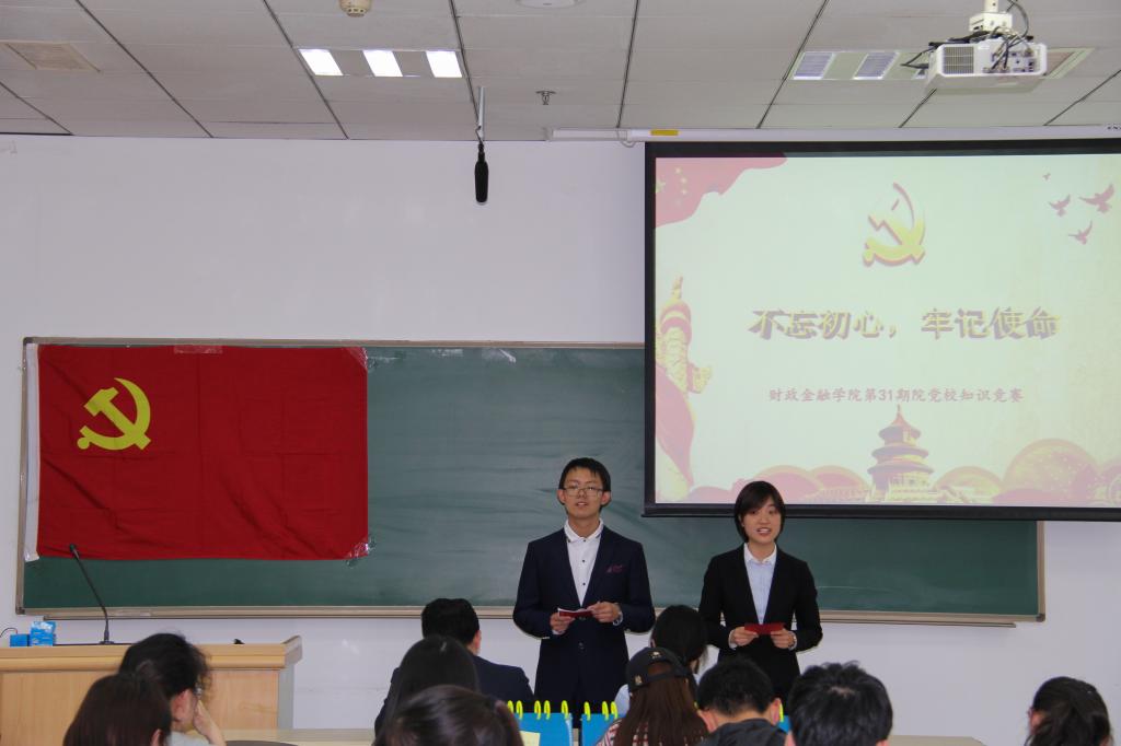 4月25日下午,公司第31期公司党校积极分子培训班学习十九大精神“不忘初心,牢记使命”知识竞赛在明商0208顺利召开。公司党委副书记黄文彬、党务秘书兰青出席活动现场。本次知识竞赛由财金党建培训部韩子越、倪婧主持。