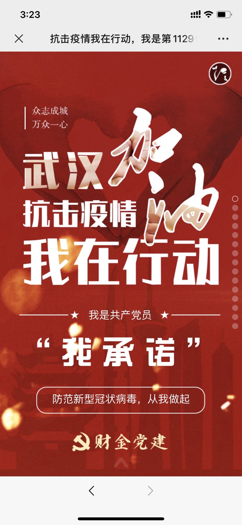 “抗击疫情,党员先行”——广大师生党员积极转发响应承诺书