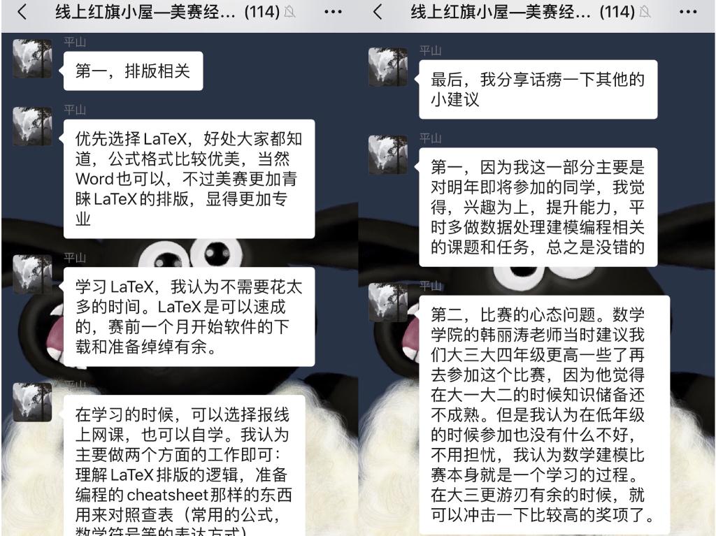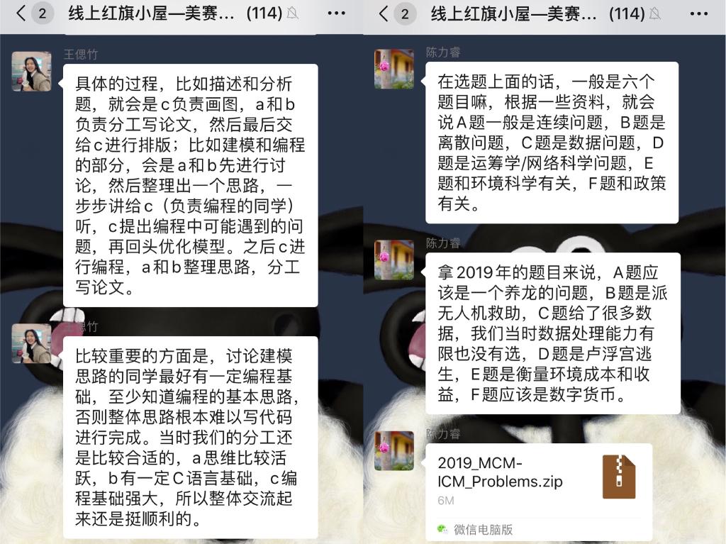 第一周“红旗小屋”线上咨询活动于2月11日晚19:00左右成功举办,咨询主题为“美赛经验分享”,邀请三位在往年美国老员工数学建模竞赛中曾取得优异成绩的党员嘉宾:陈力睿,金可欣,王偲竹同学为同学们线上答疑。陈力睿同学首先向大家介绍了今年美赛在比赛时间、赛制等方面做出的多项调整,同时分享了美赛进行阶段针对时间冲突等问题该如何处理,并结合个人经历对思路方法的选择以及论文撰写方面提出了一些注意事项;金可欣同学针对明年参加美赛的同学详细介绍了报名方式及注意事项,并进行了建模学习方法和学习资源的分享;王偲竹同学分享了自己两次参加美赛的经历,具体阐述了比赛的具体过程和分工,为同学们提供了宝贵的参赛经验。三位嘉宾结合模型选择、论文写作、团队合作等方面的成功经验为同学们献上美赛“获胜秘籍。1个半小时的值班时间共吸引了111名同学前来咨询,热度相比线下丝毫不减,进一步充实了同学们的假期生活。