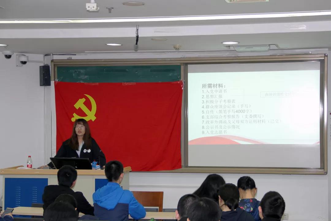 组织部部长曹佳星向全体发展对象介绍了党员的后续发展流程,并对入党志愿书、支部综合考察报告等党员发展材料填写规范进行了详细说明。她强调,上级党委将对每名发展对象的材料进行严格审查,其完整性、规范性直接关系着后续入党流程的顺利进行。本次材料完善工作时间紧、任务重,发展对象要本着对自己、对全体同学负责的态度认真完成相关工作,争取早日通过审核。同时,她以部分往期党员材料出现的问题及审查意见为例,指出了填写过程中可能存在的典型问题,提醒学员们加以注意。