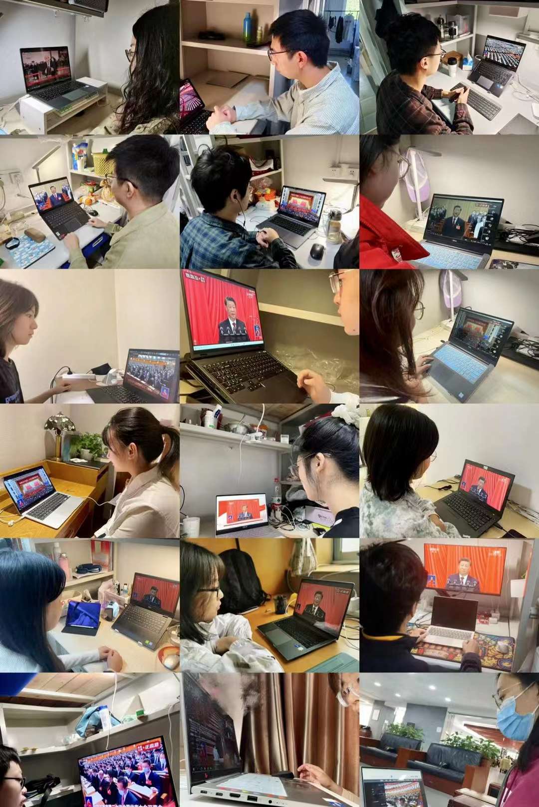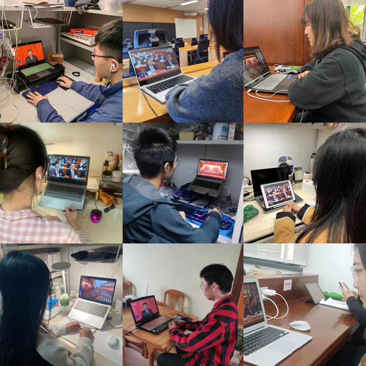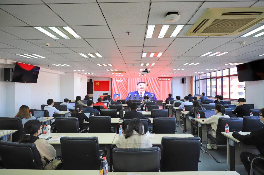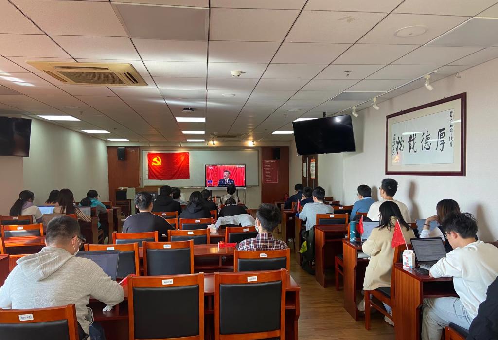公司党委组织理论学习中心组成员、各员工党支部书记在明德主楼830会议室观看大会开幕会直播。