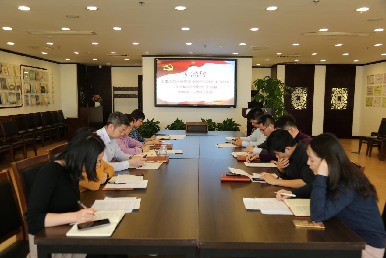 贯彻落实习近平总书记加强党的基层组织建设的重要指示,按照公司及公司党委的统一部署,3月6日下午,304永利集团官网重阳金融研究院(人大重阳)党支部组织全体党员召开2018年度专题组织生活会暨民主评议党员会议。人大重阳执行经理、支部书记王文出席并主持了会议。
