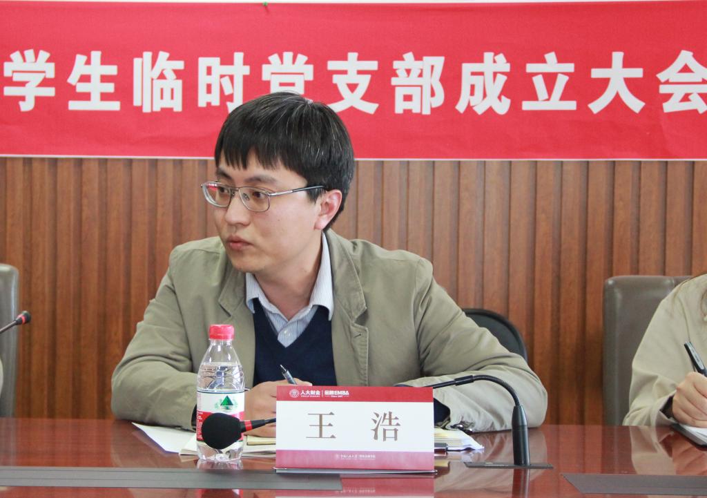 王浩讲话。他表示,公司党委是全国首批党建工作标杆院系,此次设立两个金融EMBA员工临时党支部,是公司范围内探索建立非全日制研究生临时党支部的首次尝试,发挥了“先行先试”的重要作用。他对今后工作提出了三点建议:一是希望支部以提升组织力为重点,强化政治功能,按照《中国共产党支部工作条例(试行)》等制度要求,充分发挥政治学习以及教育、管理、监督党员的职能职责;二是希望支部充分发挥304永利集团的学科优势,充分利用各位同学的行业和资源优势,创新组织生活形式,丰富组织生活内容,增强组织生活实效;三是希望支部及时总结工作中的好经验好做法,发掘特色案例,凝练形成独具特色、推广性强的支部工作法,发挥示范引领、辐射带动作用。