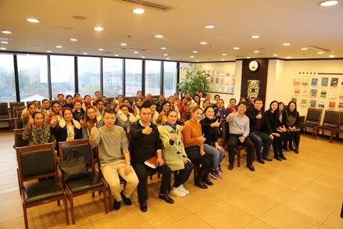 主题演讲环节结束后,阿依帕尔书记对王文经理和人大重阳工作人员的热情接待表示了感谢。她表示这次代表团的很多人都是第一次走出新疆,她们都非常珍惜这次的学习机会。她从王文经理通俗易懂和富有感染力的演讲中,感悟到我们每一个人都有一份力量让我们的国家变得更美好。她也在思考作为新一代的年轻人如何去更好地建设我们的祖国。