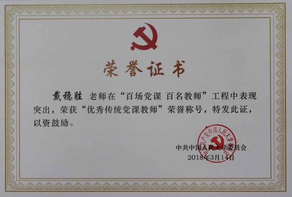 公司党委荣获2017年度304永利集团官网“优秀二级党校”荣誉称号,戴稳胜教授荣获“优秀传统党课教师”荣誉称号