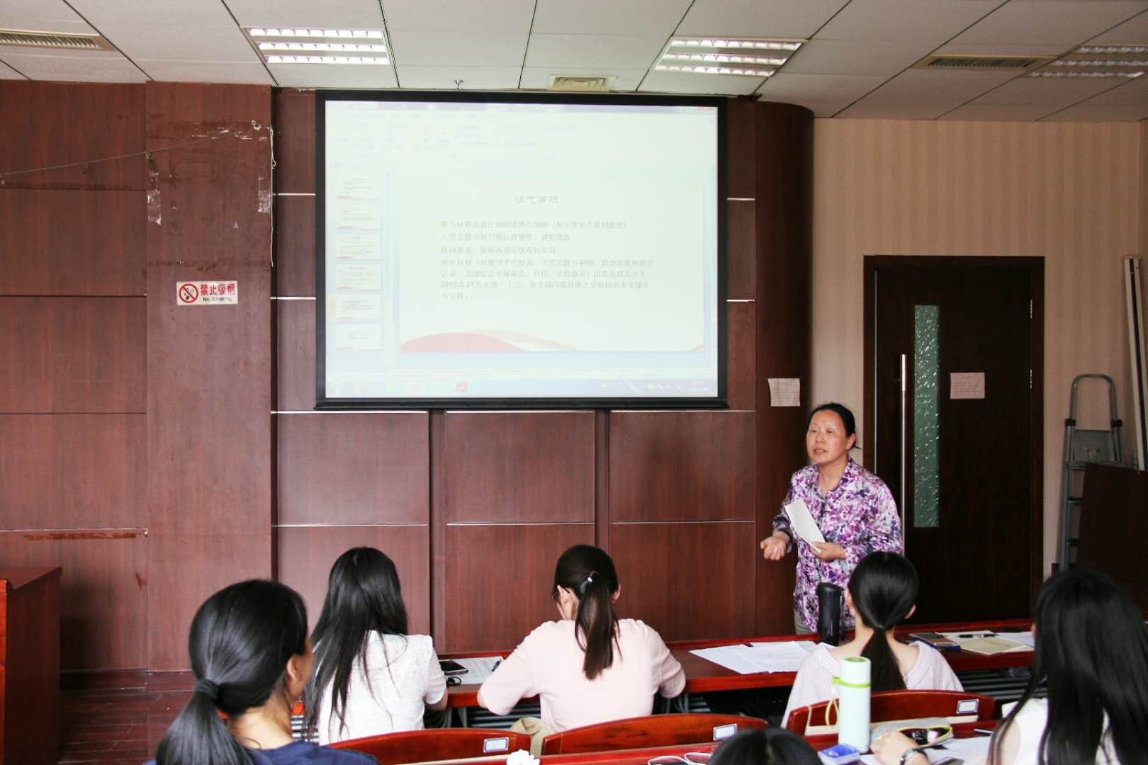 正处级组织员张茹老师在培训会上做了进一步的阐释,要求各位发展对象认真对待党员档案填写工作,本着对工作负责任的态度,实事求是地完成每一份材料。随后张老师与党务秘书兰青为发展对象进行了答疑,认真详细地解答了同学们的困惑,并着重向同学们强调要保证档案材料的时效性和完整性。