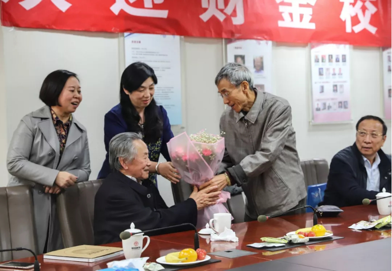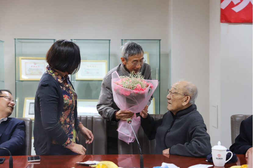 张新泽员工代表78级全体员工为两位老教授献花,员工们依次发言。张新泽员工表达了对母校、对公司、对老师的感谢之情,他表示,老师们教授的专业知识、传授的为人处世的道理对自己发展大有裨益。于学军员工则表示,希望能够与公司合作,结合实践经验、专业基础重新编写相关教材,使人大教材得到进一步发展。王茗员工表示,老师们深入浅出的教学培养了自己的经济学思维,使自己始终保持着对经济学的兴趣。此外,员工们针对双一流团队建设、国际化建设等方面为公司未来的发展提出建议。