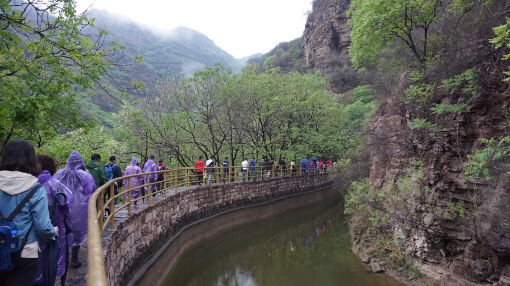 4月21日下午,全体老师冒着连绵的小雨,踏着泥泞的山路,登上红旗渠石墙,从红旗渠入口标志性建筑物红飘带处,徒步三千多米山路到达青年洞洞口。在茫茫的雨雾中,大家目睹了青年洞、创业洞、老炮眼等一处处场景,真正切身体会到了红旗渠的找水之难、引水之艰和施工之险,深刻感受到了红旗渠精神的伟大动人之处。