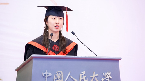 经理助理贾俊雪教授作为教师代表发言。他深切希望同学们始终胸怀梦想,不忘初心,坚韧不拔地追寻自己心中的理想,始终保有一颗“好奇的心”、“探索的心”去寻求人生真谛,探索真理。最后,他表示希望同学们能够始终牢记“实事求是”的人大校训,早日成长为一名“国民表率,社会栋梁”,并诚挚祝福大家未来一切顺利。