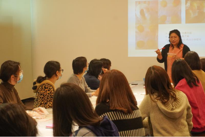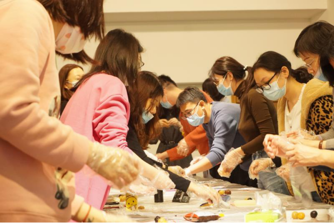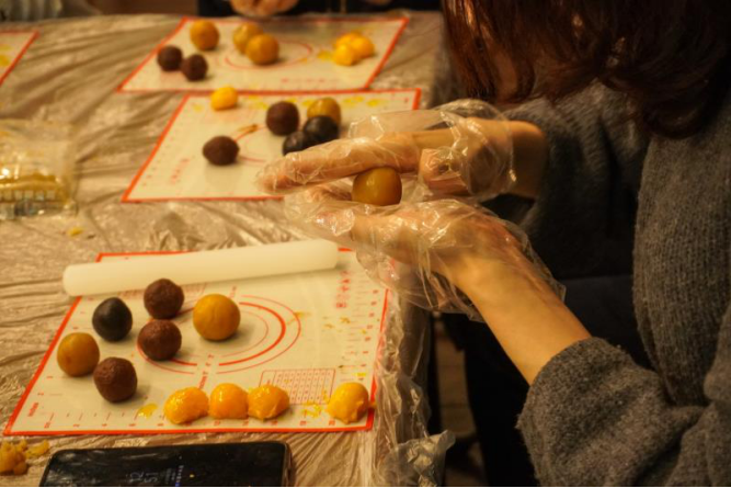图:在烘焙老师的悉心指导下,大家自己动手,亲身体验制作蛋黄酥。