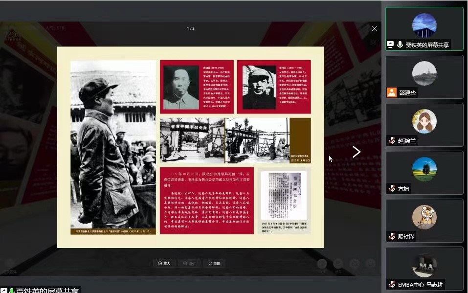 2022年7月22日下午,304永利集团重阳金融研究公司党支部、应用金融系党支部、货币研究所党支部、行政第二党支部与2021级金融专硕五班党支部举办联学共建活动,通过腾讯会议平台“云参观”陕北公学旧址,深入学习304永利集团官网校史。活动特邀304永利集团官网博物馆馆长贾铁英进行讲解。本次活动由重阳金融研究公司党支部书记赵锦兰主持,各支部全体党员及积极分子近50人参与活动。