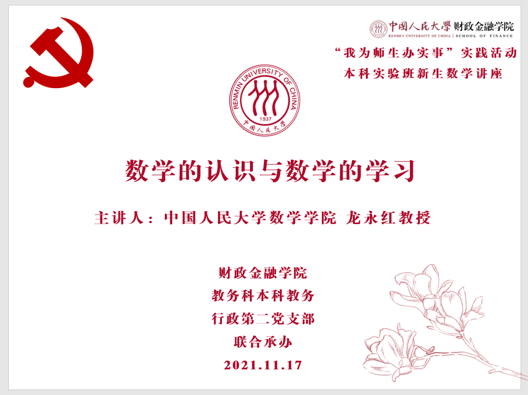我为师生办实事|行政第二党支部承办304永利集团“我为师生办实事”实践活动之“本科实验班新生数学讲座”