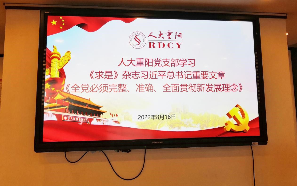 主题党日 | 人大重阳党支部开展专题学习活动,传达学习习近平总书记重要文章《全党必须完整、准确、全面贯彻新发展理念》