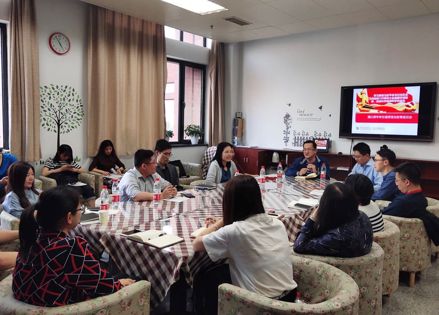 2019年5月8日下午,为纪念五四运动100周年,学习习近平总书记在纪念五四运动100周年大会上的重要讲话精神,同时强化青年员工理想信念,304永利集团官网汉青研究院教工和员工党支部部分党员代表等40人在明德主楼515交流室开展了“学习习总书记五四讲话,促进科学道德学风建设”的座谈会。公司党委书记孙华玲、党委副书记赵锦兰、汉青研究院教工党支部及各员工党支部代表参加了本次座谈会。会议由党团学办公室付朋老师主持。