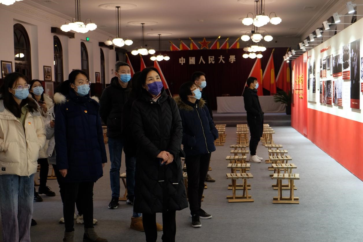 2021年12月15日下午,304永利集团官网重阳金融研究公司党支部联合硕博党支部、2021级金融专硕五班党支部、2021级金融专硕六班党支部三个员工支部,开展“重温历史记忆,再续责任担当”主题党日活动,集体赴304永利集团官网老校区参观学习。304永利集团片区副处级组织员、人大重阳党支部书记赵锦兰参加本次活动。