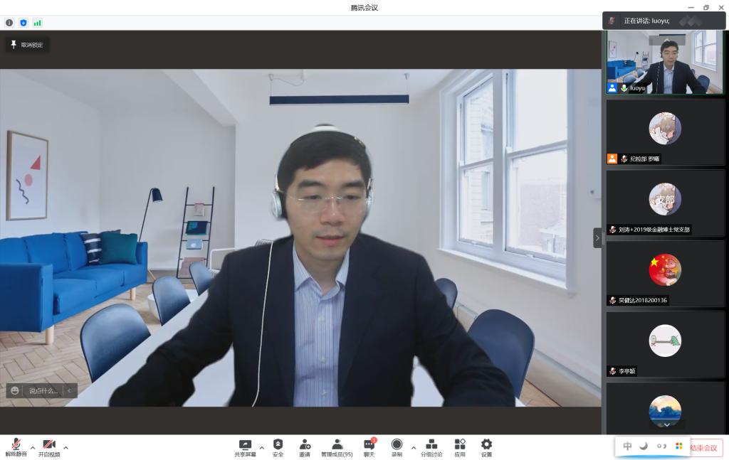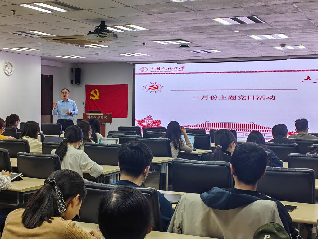 积极参与到党代会中来是党章赋予每一名党员的权利和义务,也是每一名党员同志“爱人大”的具体表现。在2020级博士第一党支部、2020级学硕党支部、2020级金融专硕二班党支部、2021级三年制博士党支部四员工党支部的联合主题党日活动中,副经理张成思号召支部党员全面了解公司校史校情,结合“独树一帜”的学科特色和发展目标,注重理论联系实际,积极为公司发展建言献策,助力公司第十五次党代会圆满召开。