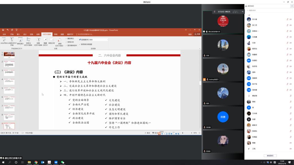 党委委员刘勇政指出,全体党员要把学习贯彻全会精神作为当前和今后一个时期的重大政治任务,要深刻认识总结党的百年奋斗重大成就和历史经验的重大意义,要完成好“重要政治任务”、参与好“政治生活中的大事”。