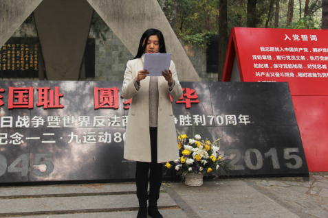 下午,两个党支部成员前往卧佛山瞻仰一二·九运动纪念亭,在陈卫东书记的领誓下重温入党誓词。宣誓后公司货币金融系党支部党员罗煜和中国银行国际金融研究所党支部入党积极分子孙艺洋分享了入党的心得体会。