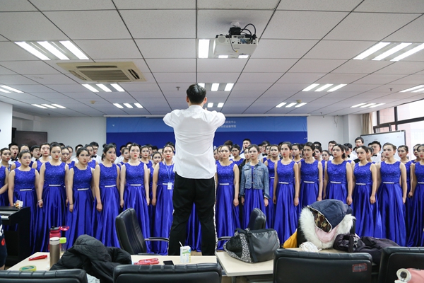 下午15时40分,公司合唱队员正式上场。屏幕闪动,精心制作的视频述说着财金20次参赛、16次夺冠的光辉历程。观众席中,一声声“财金”犹如凯歌的序曲,久久震撼着整个如论讲堂。