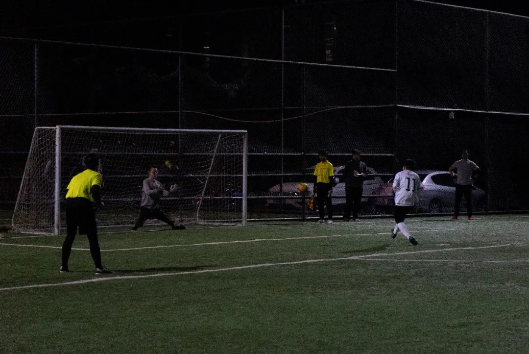 点球大战第一轮,哲院球员主罚打门过正,被门将唐堂轻松挡出!随后财金李钰主罚推向右上角被对方门将扑出。