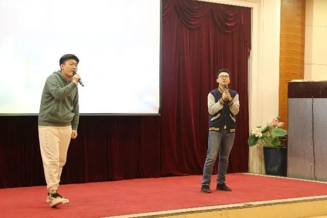 在接下来的游戏互动环节中,台下的同学们体验了“你划我猜”、“踩气球”等有趣的小游戏。不论是以夸张的肢体动作展现“一勺池”、“西区食堂”等耳熟能详的校园地点,还是绞尽脑汁猜测同组搭档表演的内容,“你划我猜”的参与者们由拘谨收敛到放松自如,默契逐渐增加。在“踩气球”环节,同学们将气球绑在脚踝,进攻、防守,不亦乐乎。“砰”,“砰”,气球的爆炸声将活动气氛推向了高潮。