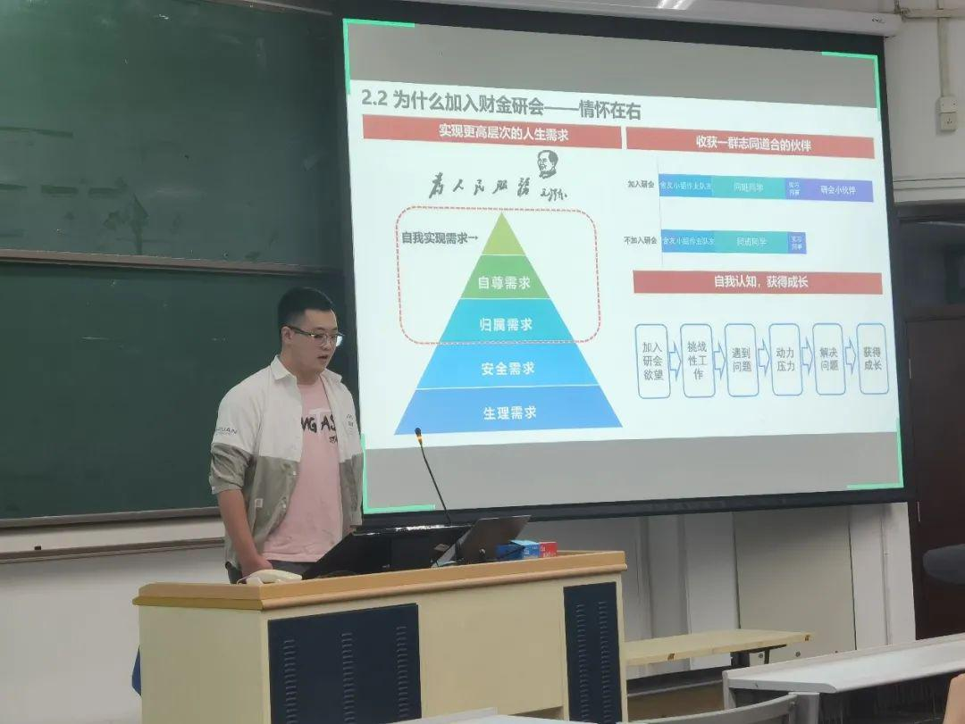 在此次迎新交流会上,研会主席王国鑫同学首先通过三个问题和在场的新生们进行交流:“财金研究生会是怎样的组织?”“为什么要加入财金研究生会?”以及“加入财金研究生会需要做什么?”。