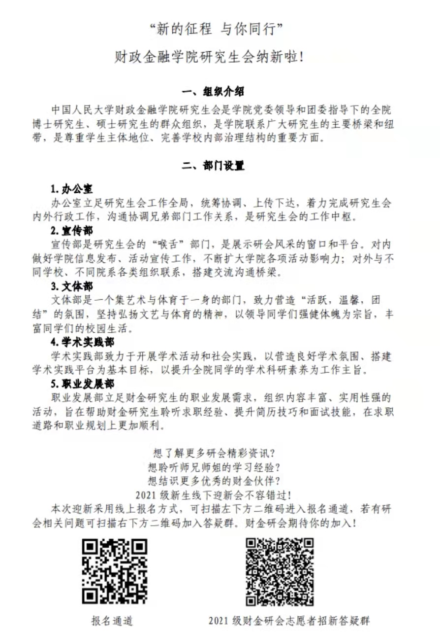 经过持续一周的线下面谈,本届财金研会成功招募百余名志愿者。至此,304永利集团研究生会2021年迎新工作圆满落幕。