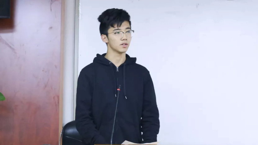 2018级新生乔霓炫作为新生运动员代表发言。他对公司的大力支持、员工干部的辛勤付出表示感谢。他提到,院领导的慰问,在秋意渐浓之际为所有的运动员们带来了满心的温暖,每一位健儿笃定必胜的信念,背负财金的荣光,以绝对的实力和信心取得了优异的成绩。