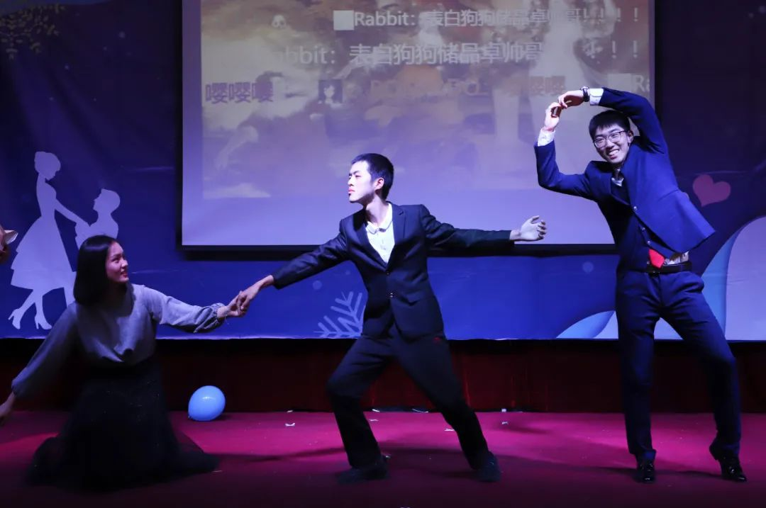 游戏共有三轮。参与者被分为三组,每组六人,站成一列。排头面向屏幕获取游戏词,转身在指定时间内以动作向第二位同学演示(过程中不得说话),依次向后将游戏词传递,最后一位同学需在20s内将其所猜答案写在白板上。猜对词的队伍加1分,猜错的得0分。若各组均未猜对,将由现场观众决定哪组更接近正确答案,该组加1分。最终分数最高组获得奖品,其余队伍将受到小惩罚。