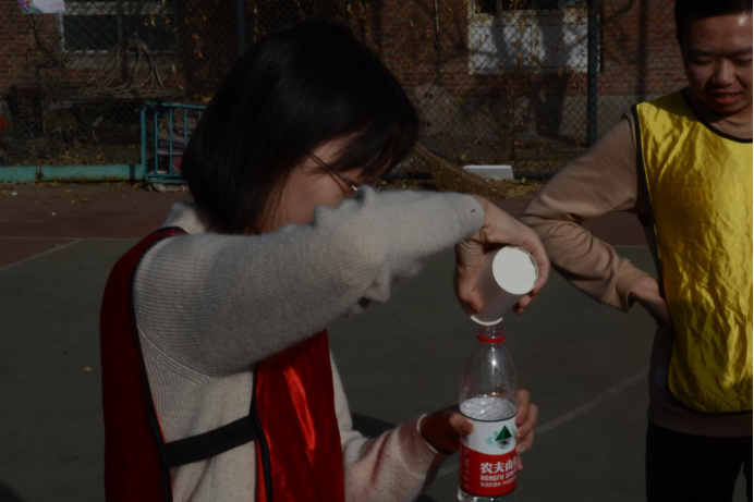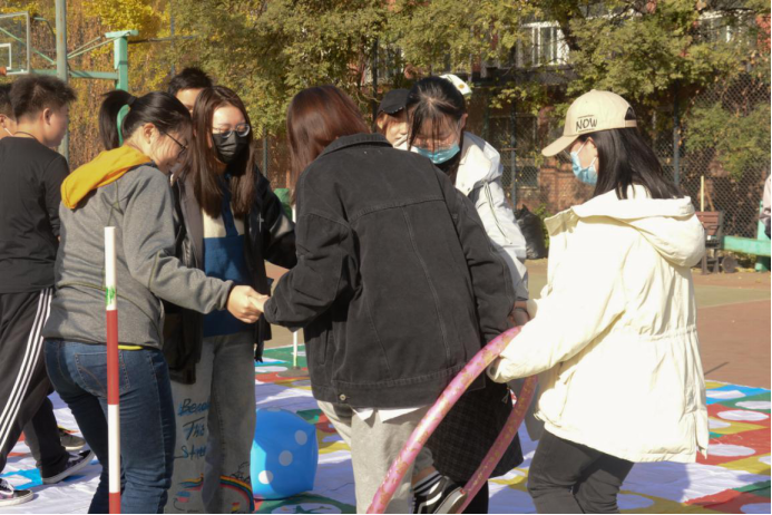 一个巨大的目标吸引了场上所有人的注意,原来是一个女孩正在用拖车拖着她的两个姐妹环绕操场一圈——走到“机会”格而获得的任务,完成它即可获得额外的分数。女孩们的欢笑声感染了场上的每一个人,大家的脸上都扬起灿烂的笑容,这份共同的快乐能驱走初冬清晨的寒冷。