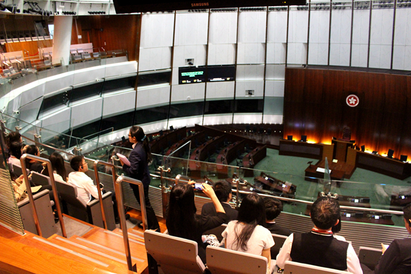 11月1日下午,访问团参观了香港立法会。工作人员先向同学们介绍了立法会的概况、组成、职能和制定法律独特的“三读”程序。之后带领访问团参观了周三举行议会的会议大厅与历史回廊。在会议大厅中工作人员向同学们介绍了议员与政府人员的席位安排,以及向公众开放的旁听席位,彰显了香港法制的公开透明。在历史回廊中同学们通过各类照片以及古老的立法文件回顾了立法会悠久的历史,并通过精致的建筑模型了解了立法会过去的面貌,同时参观了记载立法会历届主席的名册。立法会中设有模拟议会为小朋友进行立法知识的科普活动,小朋友在此进行模拟议员的投票环节,令同学们由衷感受到香港对于法制教育的重视。