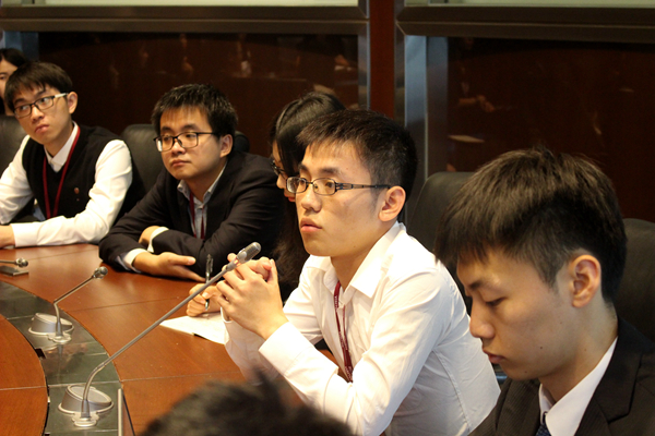 此次香港之行,我们参观了香港证券交易所、金融管理局等金融机构,也参观了香港立法会和香港中文大学。在整个参观访问过程中,双方就人民币国际化、互联网金融的兴起、以及银行合规等问题进行了深入讨论。在这几次讨论交流中,有几点给我留下了深刻的印象。第一点是香港金融环境的自由开放。比如在香港证券交易所,工作人员向我们解释了香港“披露为本”的机制,投资活动要求投资者自己考虑,对投资者要求比较高;在香港金融管理局也提到了“市场自发机制”;第二点则是在参观立法会时,我注意到有很多为小朋友普及法律知识、普及选举权的活动,这种“从娃娃抓起”的行为让我很受触动;第三是在参观香港中文大学时,我注意到该校的员工英文水平很高,有国际视野,他们在一个很开放、自由、融合的环境中学习成长,这一点值得大陆各高校借鉴。——2013级金融数学实验班刘昊凝