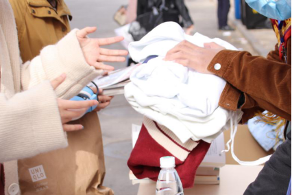 经过一天的捐赠回收,财金青协的工作人员们把我们交给了北京同心互惠公益组织的工作人员们。我和小伙伴们一起被送上卡车,开始我们新的旅程啦。经过分拣、消毒等科学处理后,我们会被捐赠给家境困难的工友们及其子弟。有的小伙伴还进入同心互惠为工友们开办的公益商店。公益商店不仅为他们提供有尊严的帮助,而且还提供了就业机会,促进了可持续发展。