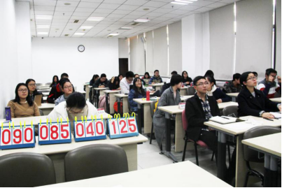 此次知识竞赛共分为五个环节。在个人必答题环节,学员代表踊跃答题,展现了丰富的党史知识储备,赢得现场阵阵热烈的掌声。在“团队综合题—学习模范树新风”环节中,学员积极探讨,通过对模范人物图片的辨识以及对历史事件的排序,学习模范先锋事迹,增进了团队协作能力。第三环节为“趣味游戏题—人生乐在相知心”,在本环节中,学员们默契配合,妙语连珠博得了在场所有人的掌声与喝彩,场内气氛达到了高潮。第四环节为团队风险题,学员们围绕着“党建知识”、“中国近代史”、“时政热点”、“党史知识”等主题沉稳应答,比赛过程扣人心弦。