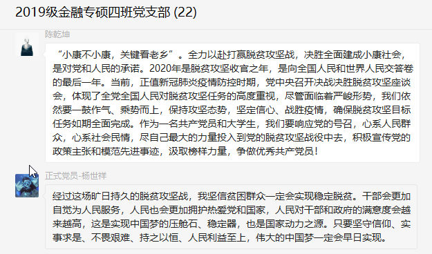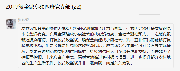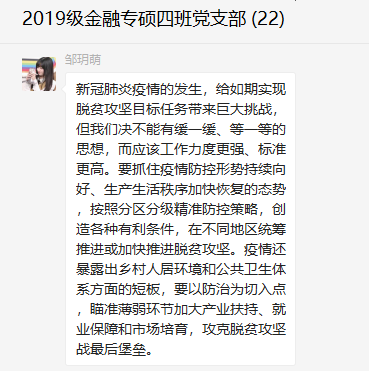 线上主题党日|2019级金融专硕四班党支部学习习近平总书记讲话,坚定脱贫攻坚信心