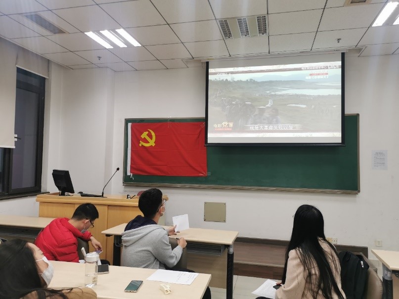 10月23日晚,2021级金融专硕一班党支部于明德商学楼0301教室开展“党史我来讲”理论学习活动,学习新民主主义革命时期的党史。党支部一人线上参加,其余成员线下参加本次活动,活动由党支部书记胡先达主持。