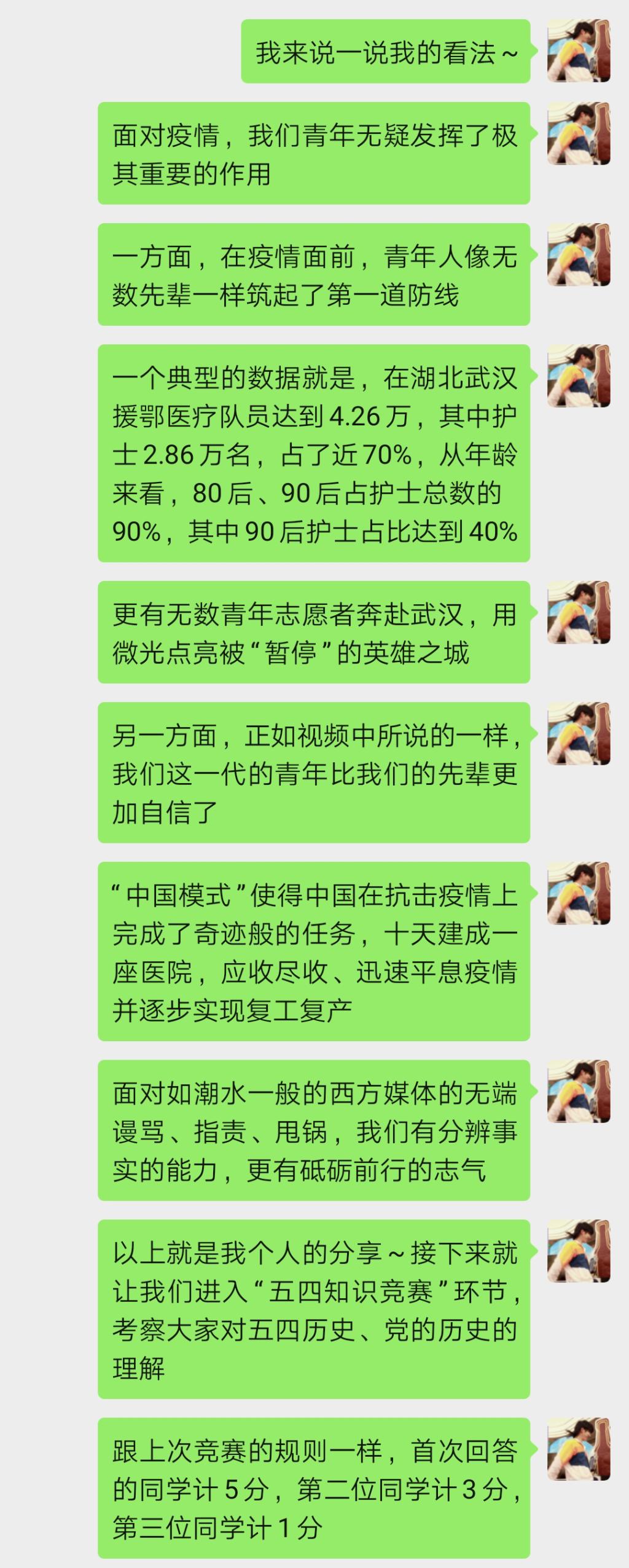线上主题党日 | 2018级汉青学硕党支部观看专题视频,组织“五四知识竞赛”